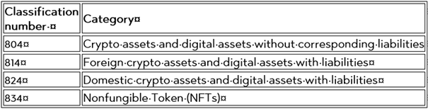 Additionally, new classification numbers for crypto assets have been introduced to facilitate more precise categorisation:
